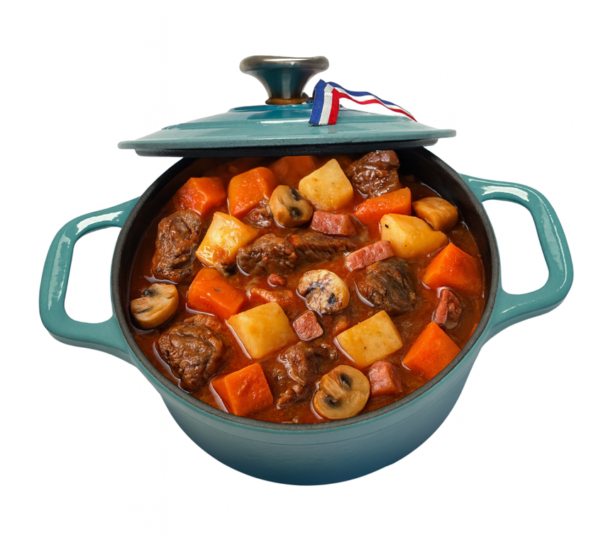 In bare cast iron, tomato sauce can cause a metallic taste and dull the surface. However, Chasseur enameled cast iron cookware allows you to simmer tomato-based dishes safely. The enamel barrier prevents acid from reacting with the iron, maintaining the integrity of both the food and the cookware. Tomato sauces, stews, and braises all cook beautifully in Chasseur casseroles without any flavour transfer.