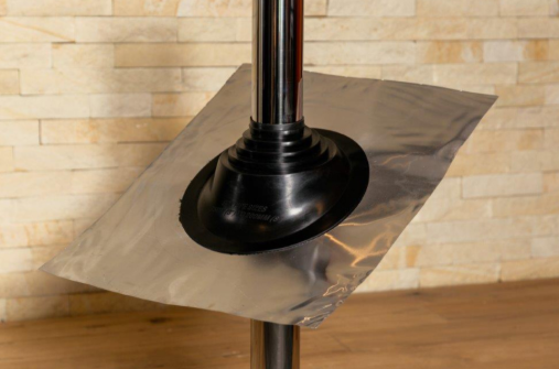 Flashing ensures a watertight seal where the flue exits the roof. Hydrofire explains that flashing selection must match roof pitch and roofing material to prevent leaks.