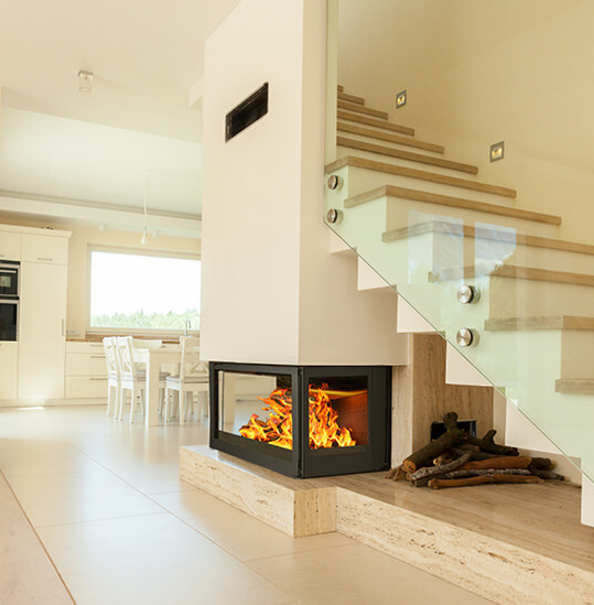 Open-plan layouts benefit significantly from side glass fireplaces and double-sided fireplaces.