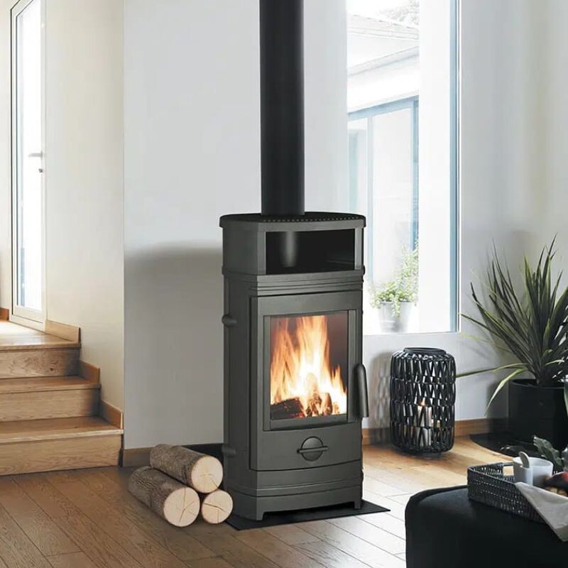 The Invicta Treville is a powerful freestanding fireplace manufactured in France by Invicta, a leading name in cast iron foundry work. Designed for efficiency and style, this unit is perfect for homeowners seeking reliable warmth and timeless aesthetics. Key Features: Eco Design 2022 compliant 8 kW nominal heat output Heats spaces from 40 to 100 m² 77% efficiency rating 8-hour extended burn time in slow combustion mode Clean glass system and post-combustion technology Accommodates logs up to 34 cm in length Traditional cast iron design 5-year extended warranty upon registration Experience the perfect blend of functionality and design with the Invicta Treville Cast Iron Stove—a sustainable heating solution that adds elegance to any home.