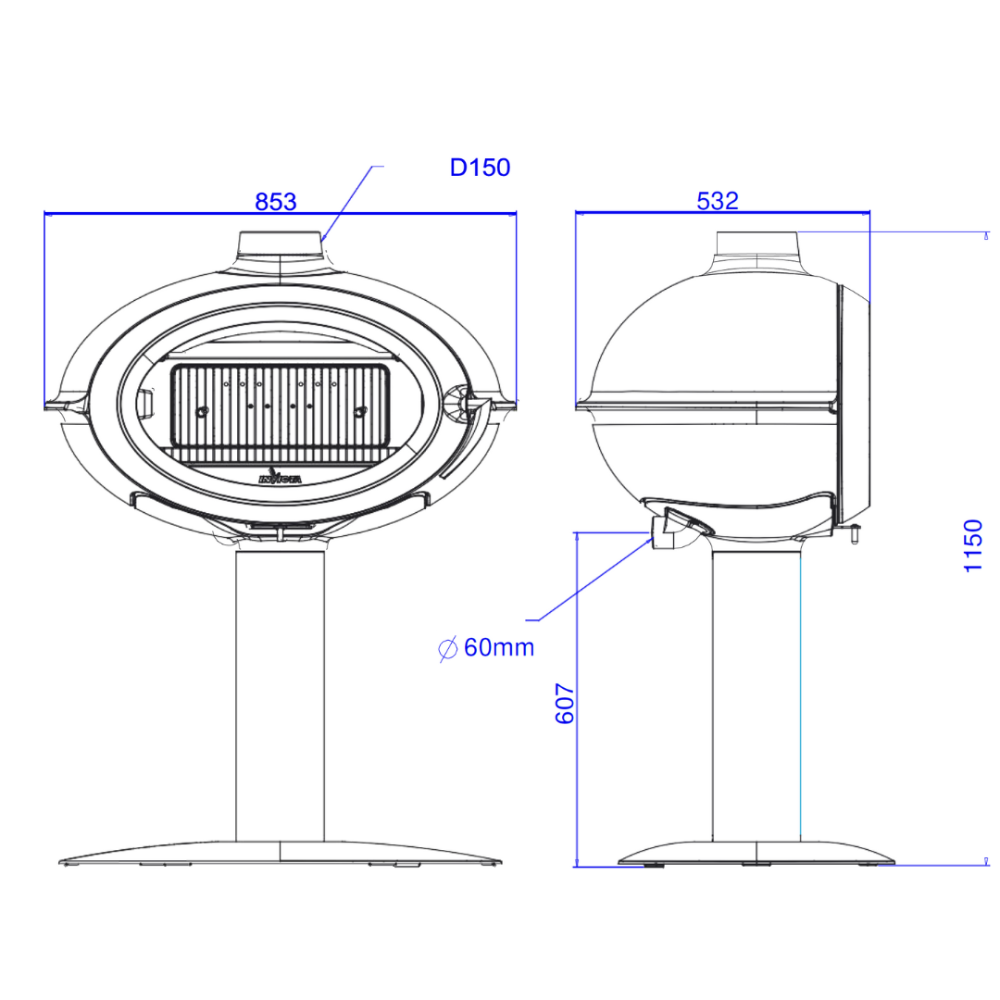 The Invicta Brio on Pedestal is a powerful freestanding fireplace manufactured in France by Invicta, a leading name in cast iron foundry work. Designed for efficiency and style, this unit is perfect for homeowners seeking reliable warmth and timeless aesthetics.