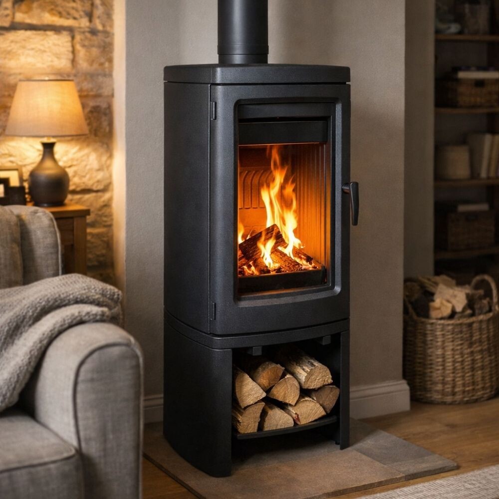 The Verta Pedestal features a Primary, Secondary, and Tertiary combustion system, ensuring a cleaner, more efficient burn. Primary air feeds the fire from below, Secondary air supports combustion and keeps the glass cleaner for longer, while Tertiary air improves overall efficiency and reduces emissions in line with Eco Design standards.