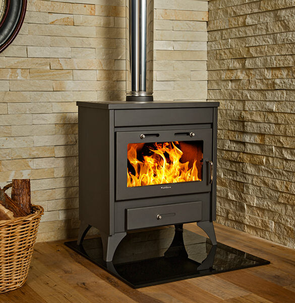Big on kilowatts and light on wood, this impressive boiler stove fireplace is crafted from the sturdiest steel and makes light work of heating a medium to large home.