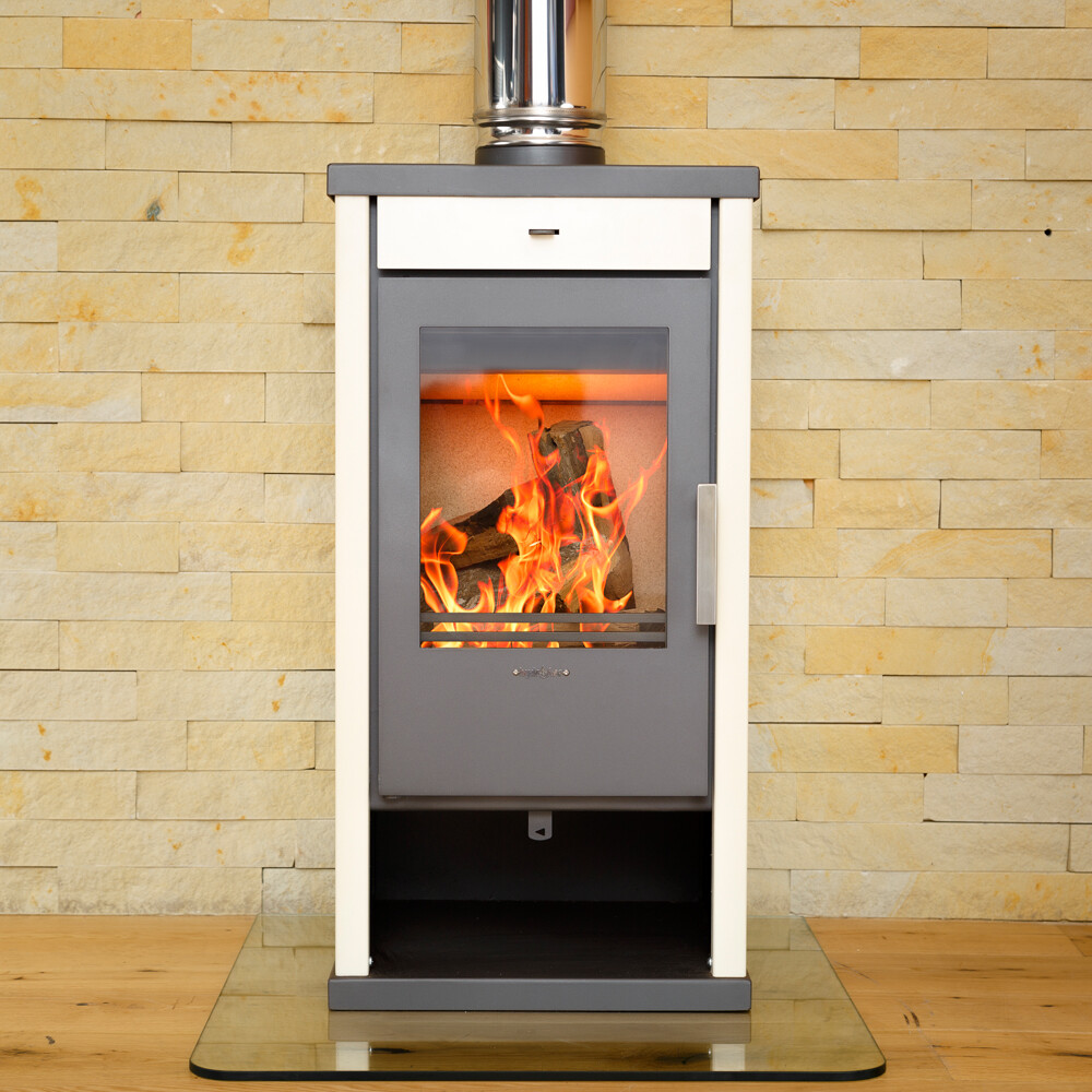 This brand-new model is made from steel, a stylish and reliable material that ensures wood burns efficiently. With an average of 12kW of power produced, it is ideal for medium size spaces of up to 129m². Despite its compact stature, the Vanessa is highly energy-efficient, providing an impressive 83% efficiency. Aesthetically, this fireplace comes in both Red and Ivory, satisfying the most design-focused consumer. Thanks to its elegance and functionality, staying warm and cosy throughout the winter has never been easier.