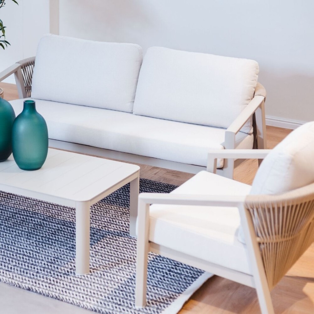 Designed for laid-back luxury, this elegant outdoor lounge set offers generous comfort with a contemporary woven rope finish—perfect for entertaining or relaxing under the sun.