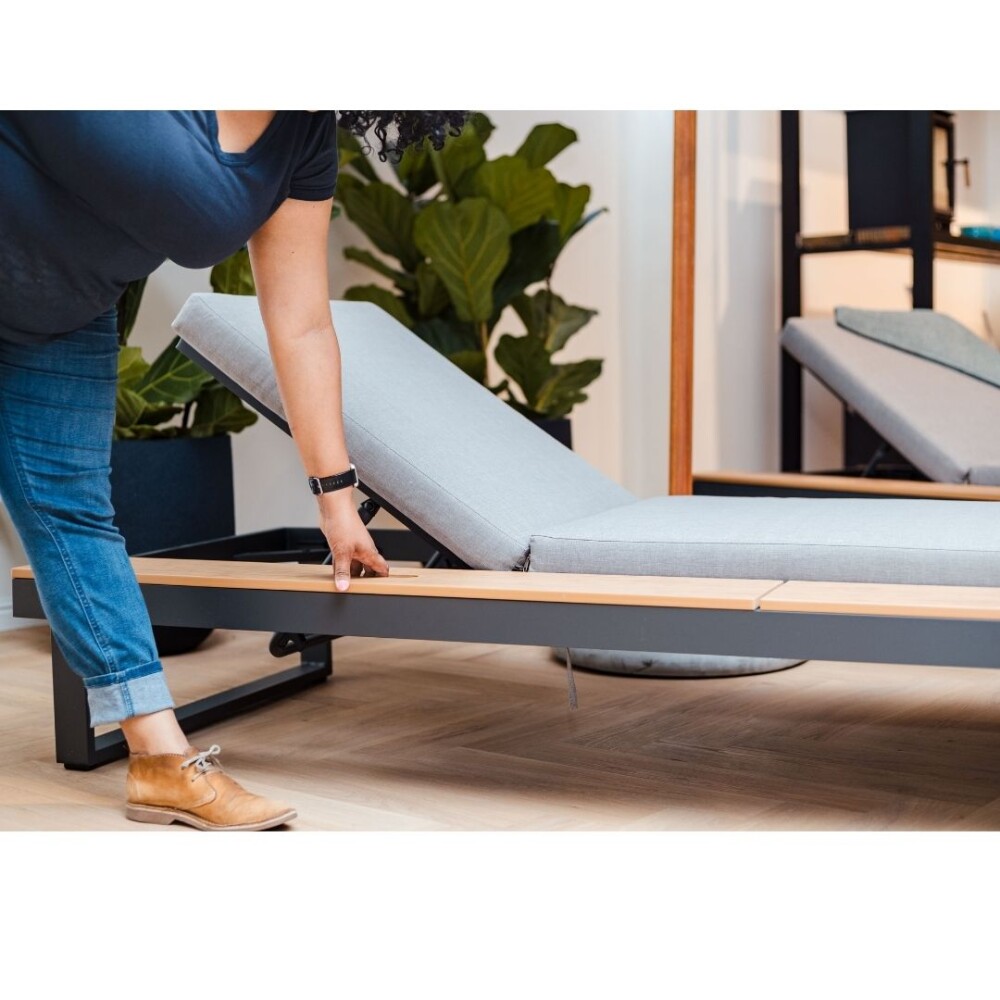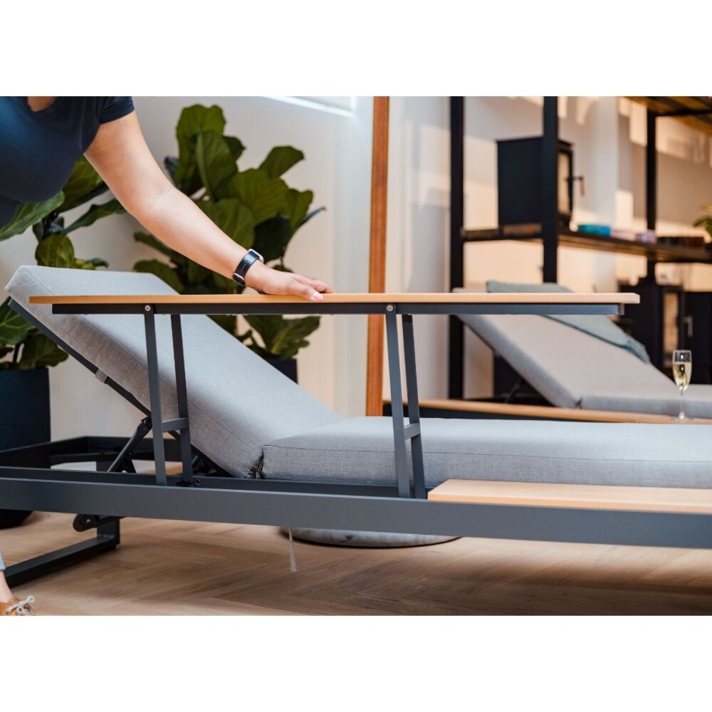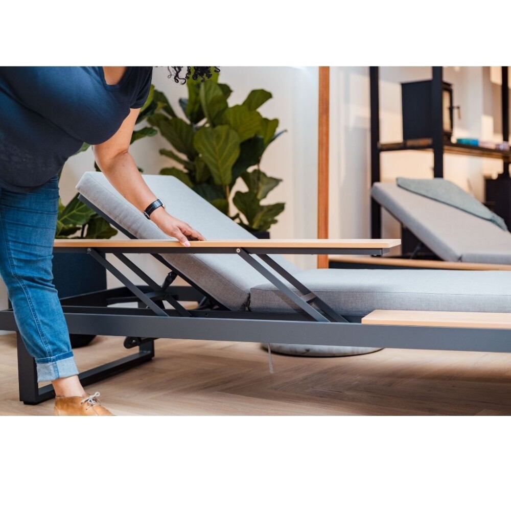 Durable Build: Aluminium frame with matte anthracite powder coating and teak-look PP wood armrests