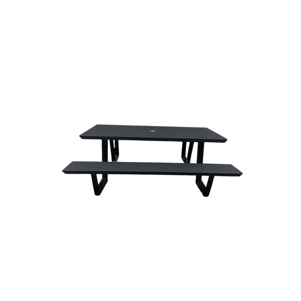Central umbrella hole for optional shade This all-in-one table and bench set is perfect for patios, courtyards or parks—bringing everyone together with ease and style.