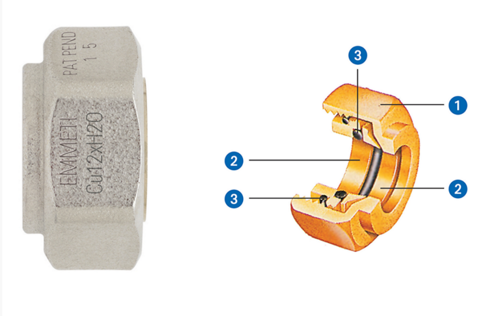 The compression seal is used to join piping to compression type fittings and threaded ends. The unique design and special seals employed within the part ensures continuous operation at high temperatures and pressure while maintaining an air tight and leak proof joint.