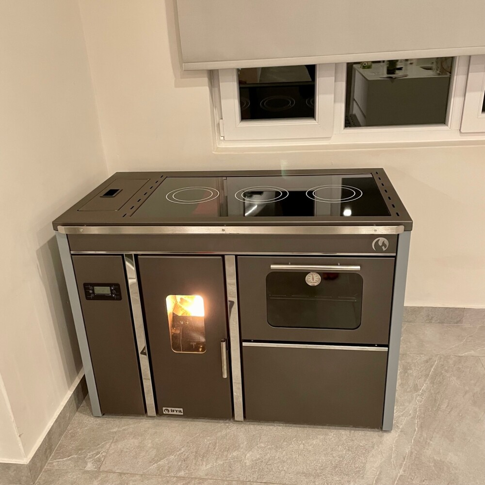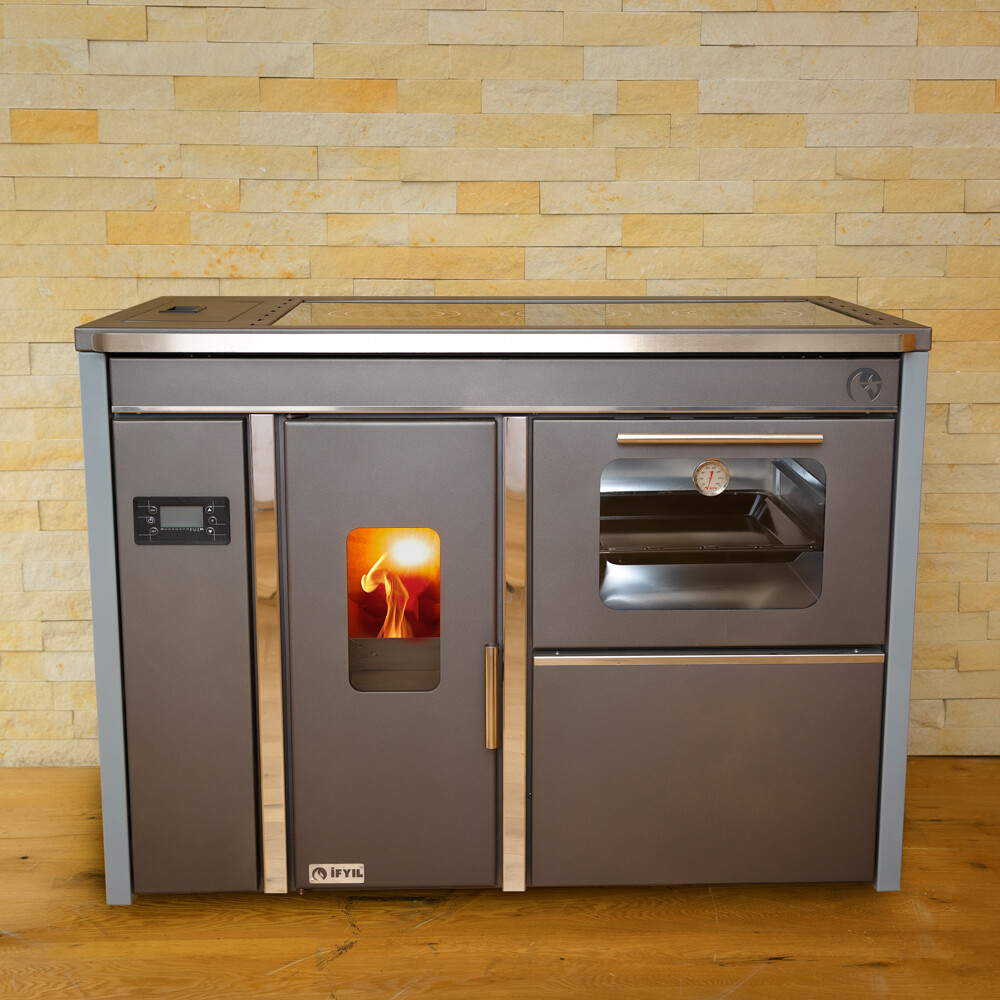 Featuring a pellet feeding hopper, with integrated timer controls and an automatic ignition, the Bosphorus allows you to schedule your heating ahead of time, letting you can set the turn on and turn off times for the whole week ahead. In addition, it can connect to room thermostats, and functions as a water boiler for central heating. Beyond its dual heating capabilities, it also features an oven compartment, and glass cooker surfaces, allowing you to harness the same pellet fuel to heat your room, heat your home, and cook your food. Enjoy comfort, utility and convenience, at an efficiency to be proud of.