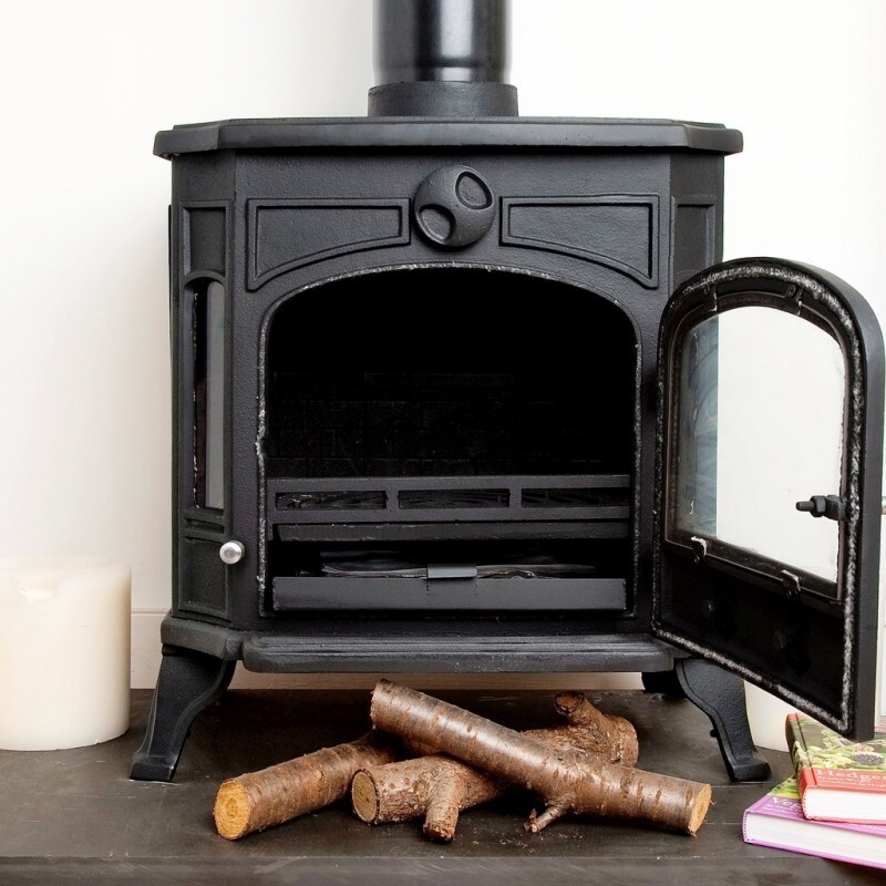 The combustion chamber is fully lined with cast-iron firebricks and comfortably loads 30cm logs. There are heat resistant fire rope seals on the door, a removable steel baffle plate, and a cast iron, multi-fuel ash riddling grate. The ash pan is removable for an easy clean. Included is an ash pan tool for ash pan removal; a glove for opening the door and adjusting the air levers; and an instruction manual. The legs of the Fuji are removable.