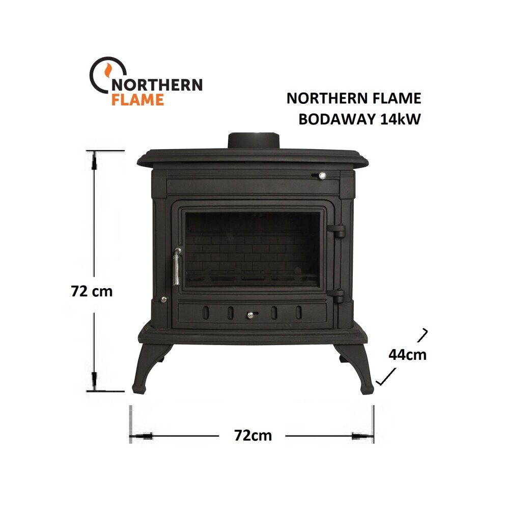 The Northern Flame Bodaway is a durable, multi fuel fireplace manufactured out of pure, Australian mineral iron ore. The cast iron is top quality and durable and is not produced from recycled or excess materials. It features a cast iron door, body and a thick, cast-iron top which radiates heat long after the fire has dimmed down. There is a polished chrome handle and air control fittings. Heating a kettle of water is made easy on its cast iron flat top. This is very useful with our current power cuts. The Bodaway is an impressive fireplace with a great heat output, and it looks charming with both modern and traditional décor.