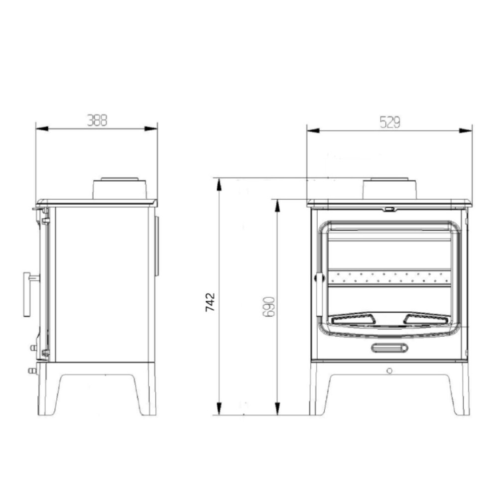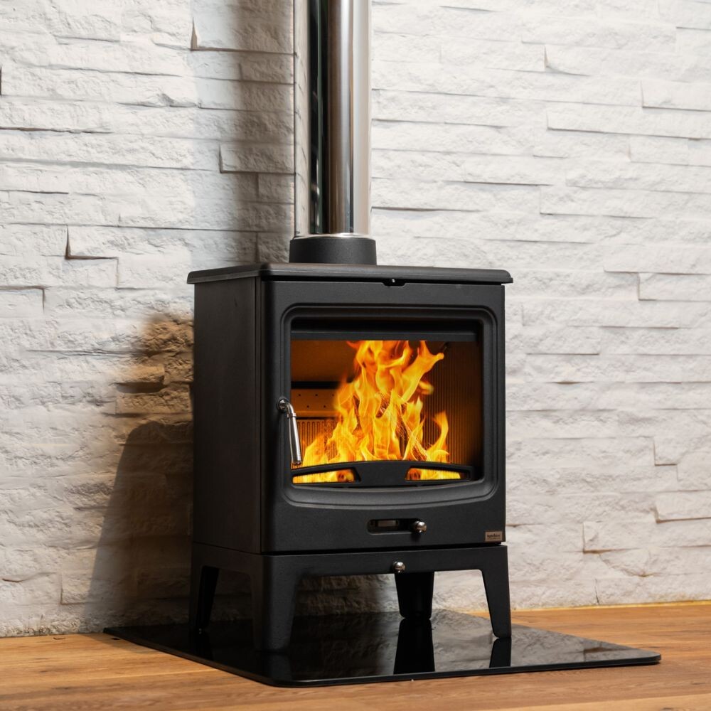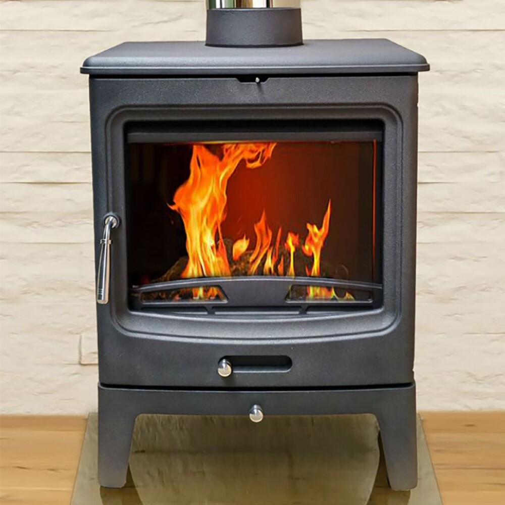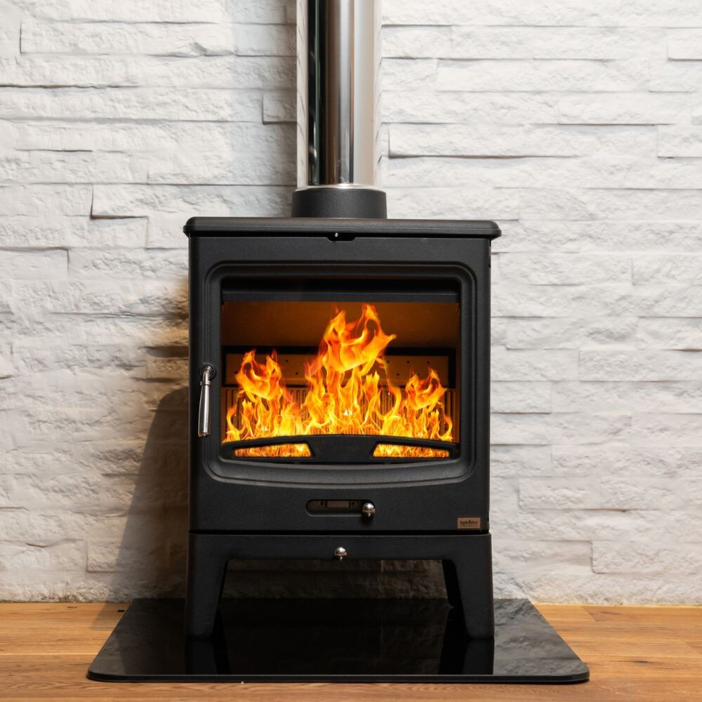The Juna features a cast iron door, body, and top, as well as internal liner panels, ensuring exceptional heat retention and longevity. This fireplace is designed to deliver an efficient and eco-friendly burn, conforming to Euro 2022 Eco Design requirements.