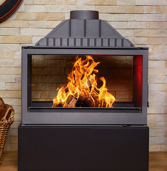 Fully cast iron, this high-end fireplace is extremely powerful and can heat a medium to large space with ease, keeping the room warm for longer periods of time. With an output average of 14kW, the Titan Double Sided is ideal for large spaces up to 125m². While an open fireplace is only 25-30% efficient, this fireplace provides 72% efficiency. This model is capable of loading 700mm logs, saving you the trouble of chopping extra wood. Aesthetically, the built fireplace is the ideal room divider or centre piece, thanks to the double-sided glass that showcases the blazing fire on the front and back. Not only is this a modern addition to your at-home living, but the built-in functionality ensures it is a practical one, too. This fireplace has been imported from Europe , with German manufactured casting and boasts a strict CE certification, so you know you can rely on the quality of any unit you purchase from Hydrofire. Just to ensure you sleep well at night, it comes with a 5 year warranty.