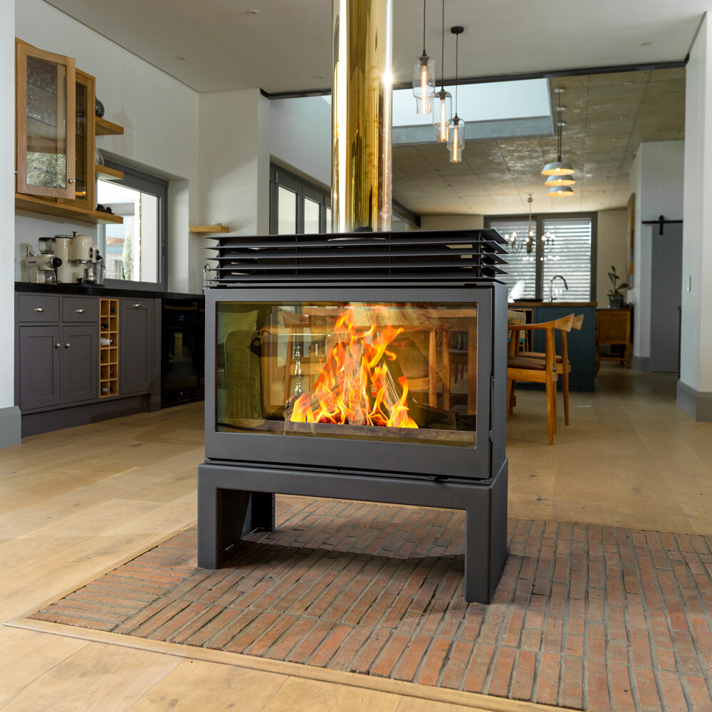 The Titan FS Double Sided is the one of the largest model's in the Hydrofire Free Standing fireplace collection, this fireplace makes a captivating feature in any home, with glass panels on both sides revealing a better view of the fire, and more space to huddle around it and enjoy the warmth emitting from the huge combustion chamber, which can fit large logs up to 700mm inside. Fully cast iron, this high end fireplace is extremely powerful and can heat a medium to large space with ease. Staying warm this winter has never been more appealing. This fireplace has been imported from Europe , with German manufactured casting and boasts a strict CE certification, so you know you can rely on the quality of any unit you purchase from Hydrofire. Just to ensure you sleep well at night, it comes with a 5 year warranty.