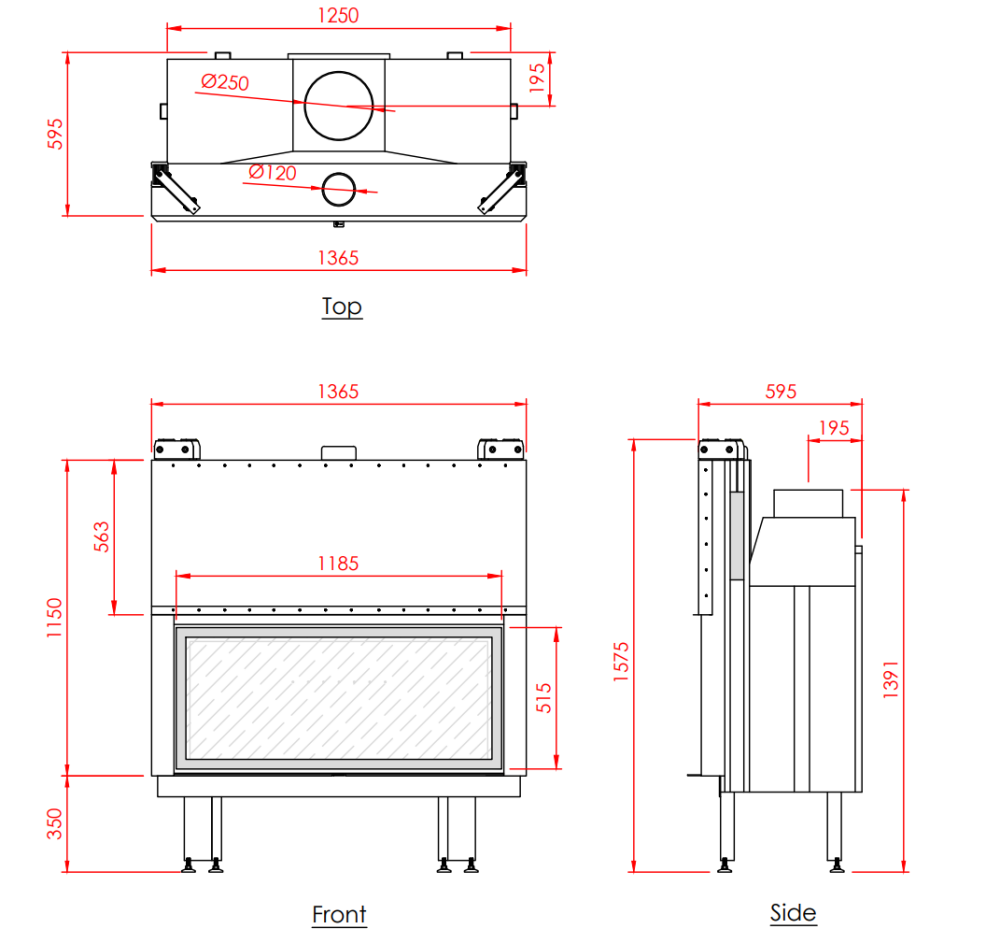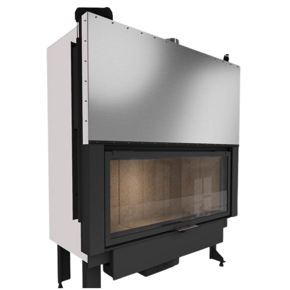 Crafted from high-quality steel, the Flat 125 Minimal Std Fireplace features a power output of 18 kW (ranging from 12 to 25 kW) and an impressive efficiency of 77%, capable of heating areas between 115m² to 220m². Its flat top design simplifies the installation process.